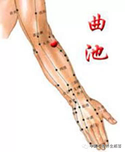 大肠经上的曲池穴位于肘横纹外侧端,屈肘时,横纹尽处。主治咽喉肿痛,牙痛,目赤痛,热病上肢不遂,手臂肿痛,腹痛吐泻...