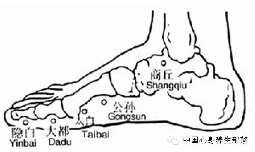 公孙穴位于人体的足内侧缘,第一跖骨基底部的前下方,可治疗消化系统疾病