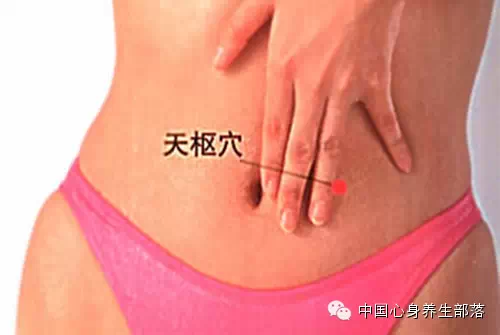 天枢穴位于腹中部,和肚脐平行往外两寸;