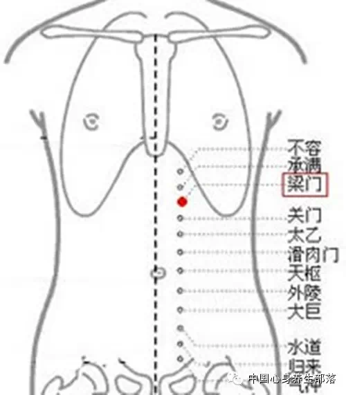 膀胱经上的胃俞穴,位于人体的背部(后腰处),即第十二胸椎棘突下,左右旁开二指宽处即是);梁门穴位于人体的上腹部,当脐中上4寸,距前正中线2寸