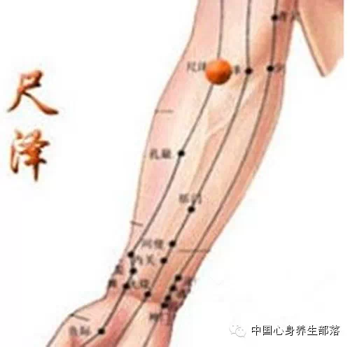 肺经上的尺泽穴位于肘横纹中,肱二头肌侧凹陷处;