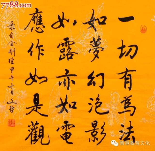译文:一切执著于个人主观意识的认识,而造作出的思想观念观点和概念,以及理论与方法,皆是有为法。一切有为法,像虚妄的梦境和幻术幻化出的境象一样,像水面上泛起的泡沫与虚呈的影像一样,都是虚幻不实的(如梦幻泡影);像天降露水和电闪雷鸣一样,都是稍纵即逝、生灭无常的(如露亦如电)。人若执著于此,就会被这样的虚妄虚幻、生灭无常的万法万相迷却本性。因此,就须要形成这样的思想意识之思维模式,去认识并践行(应作如是观)——“不取于相,如如不动”。