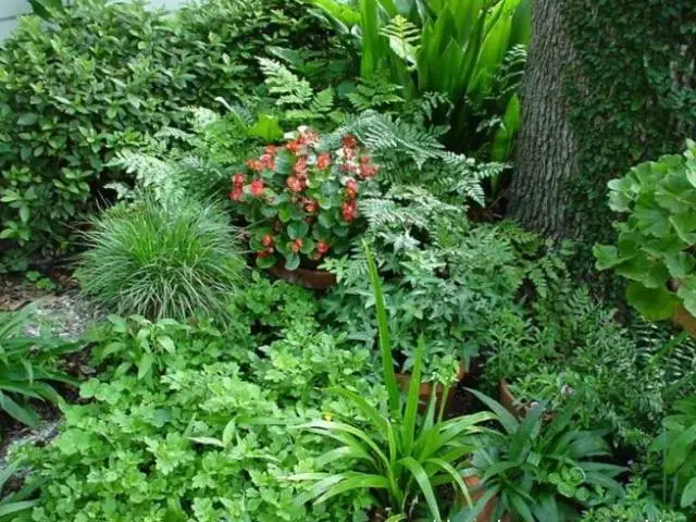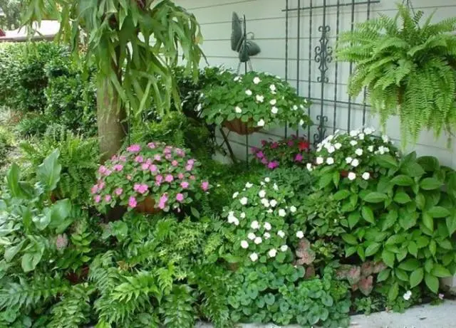 19.阴地花境:布置在比较荫蔽环境处的花境。