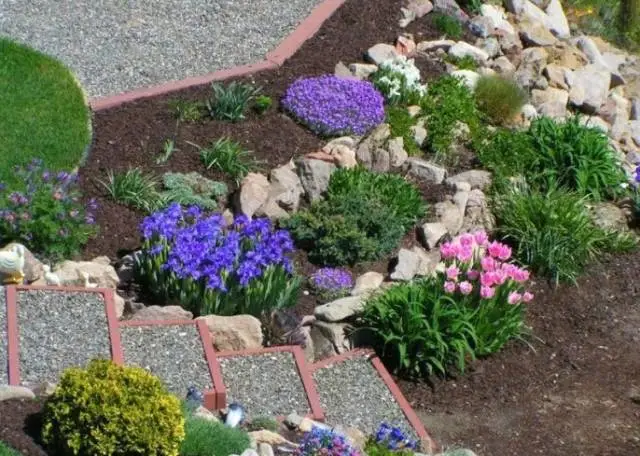 15.岩石花境:模拟岩石山体自然状态,布置岩生植物或高山植物而形成的花境。